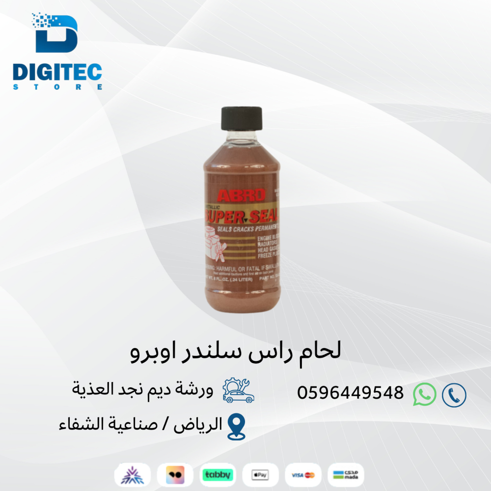 يعد مانع تهريب الرادياتير ABRO Metallic Super Seal حلاً فعالًا للحد من التسريبات في المحركات والمكونات الأخرى. يعمل على إغلاق الشقوق بشكل دائم في محركات السيارات، مشعات المياه، رؤوس الأسطوانات، وأماكن التجميد، مما يساعد على تحسين أداء النظام وحمايته من التدهور.